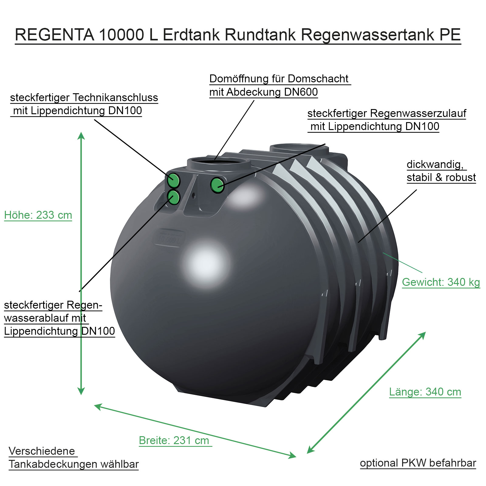 REGENTA 10000 L Erdtank Rundtank Regenwassertank PE