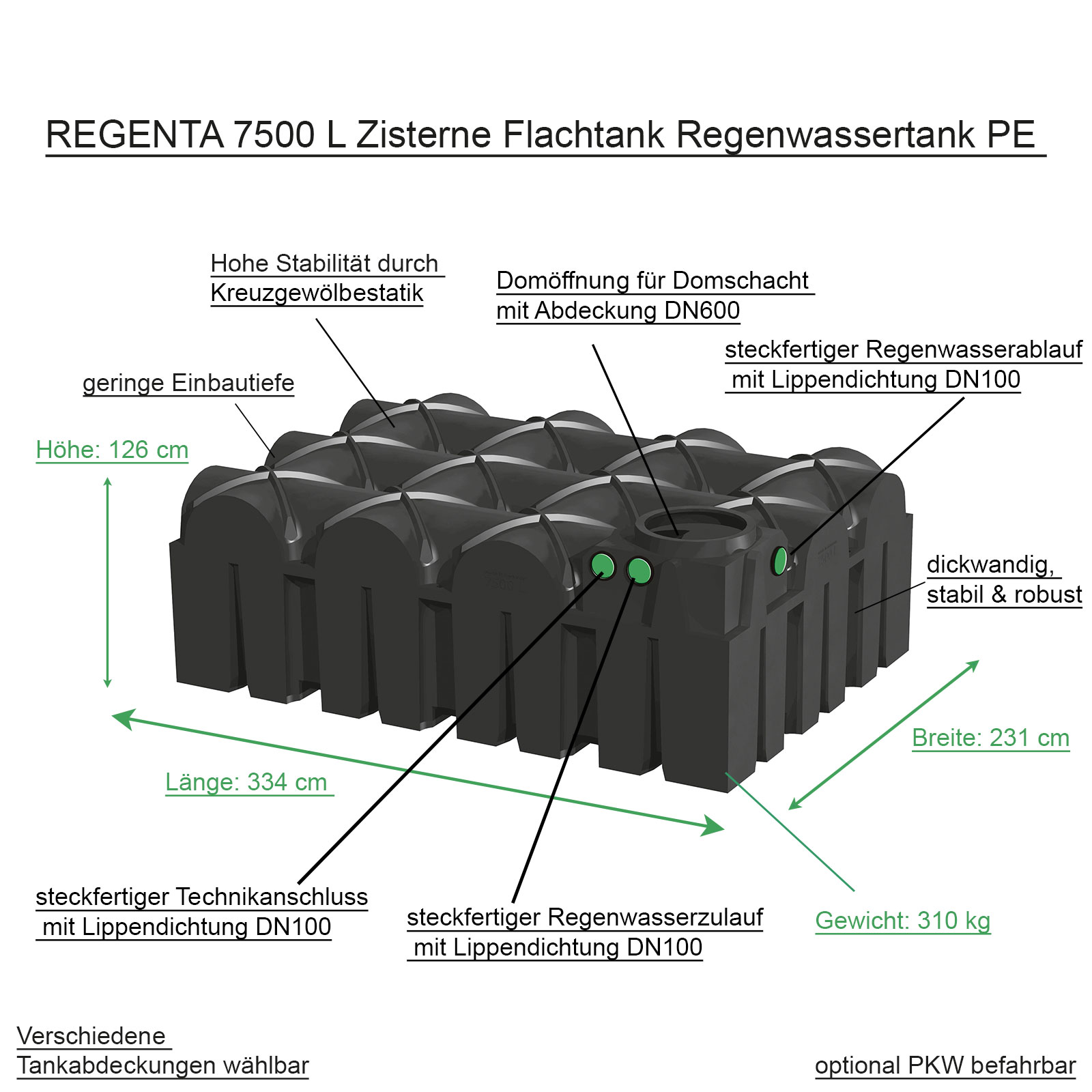 REGENTA 7500 L Zisterne Flachtank Regenwassertank PE