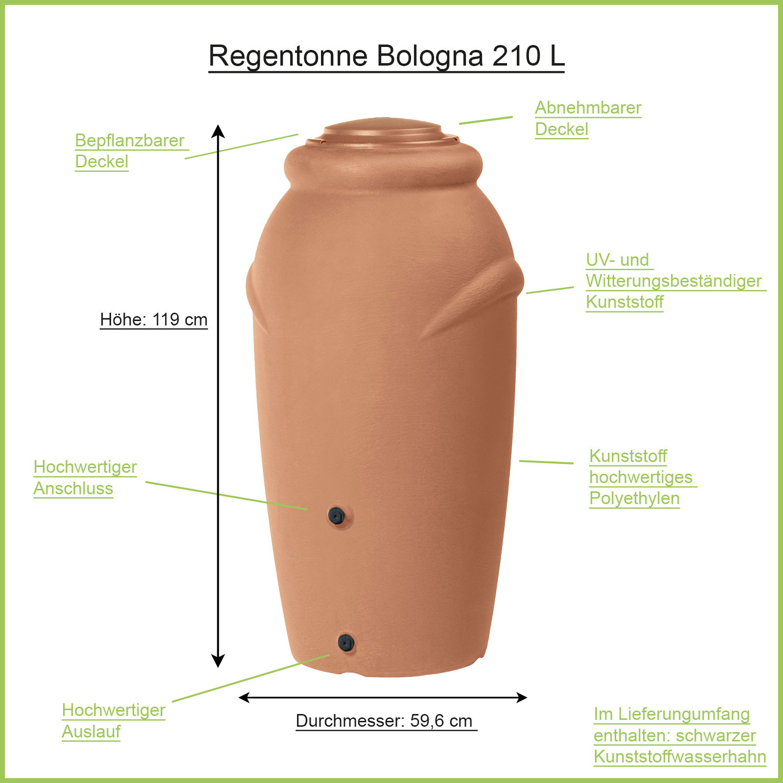 Regentonne Amphore BOLOGNA 210 Liter terracotta inkl. Hahn