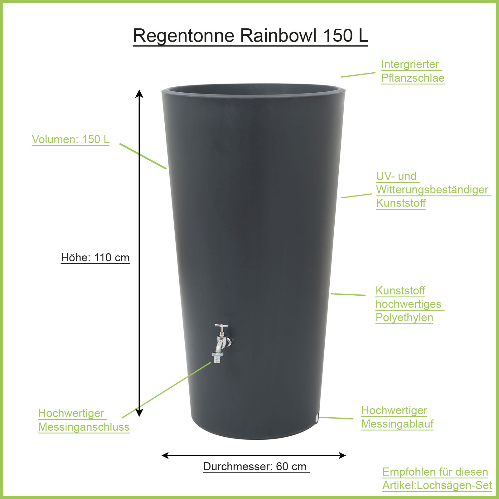 Regentonne anthrazit RAINBOWL FlOWER 150 Liter bepflanzbar