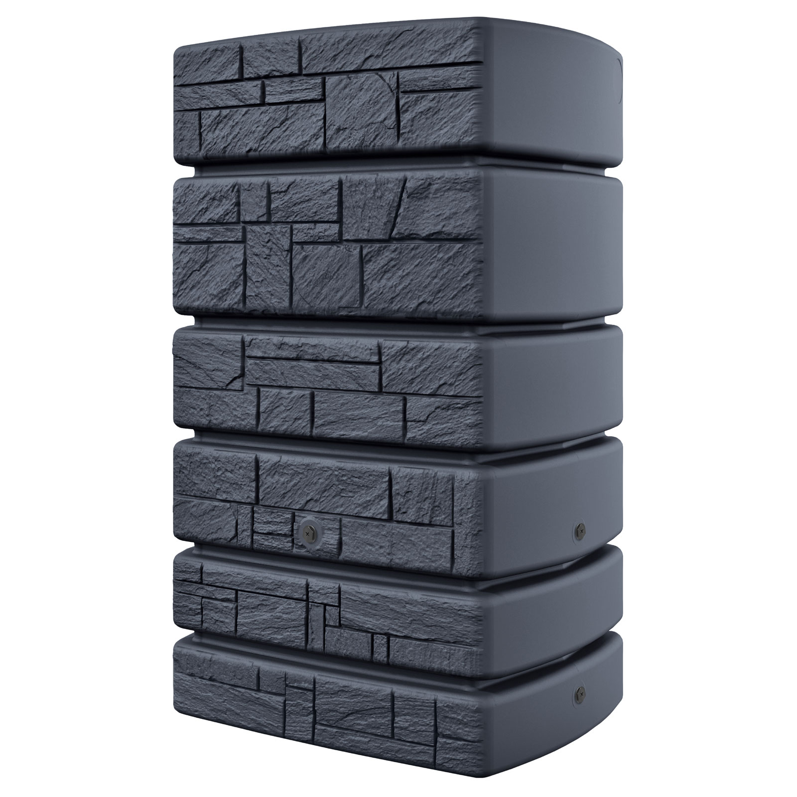 Die Regentonne eckig Santuro ist der perfekte Wandtank für einen modernen, mit Still angelegter Garten. Der hochwertige verarbeitete Kunststoff trotzt den kräftigen UV-Strahlen, im entleerten Zustand können Sie die Regentonne anthrazit 500 Liter ohne bedenken überwintern lassen. Die moderne Oberflächenstruktur ist einer von Hand gemauerten Schiefermauer zum verwechseln ähnlich. Egal wo Sie in Ihrem Garten die Regenwassertonne eckig bzw. Wandtank eckig aufstellen werden, sie wird immer die Blicke auf sich ziehen und Ihr Gartenbild mit einem Eye Catcher versehen. Die geringe Standfläche von 77,5 cm x 58,3 cm ist ein weiterer Vorteil der Regentonne eckig. Die eingelassene ¾ Zoll Gewinde ermöglichen Ihnen einen einfachen Anschluss eines Wasserhahns bzw. auch das Verbinden von mehreren Regentonnen. Die 500 L Regenwasser sind die ideale Menge für einen mittelgroßen Garten.