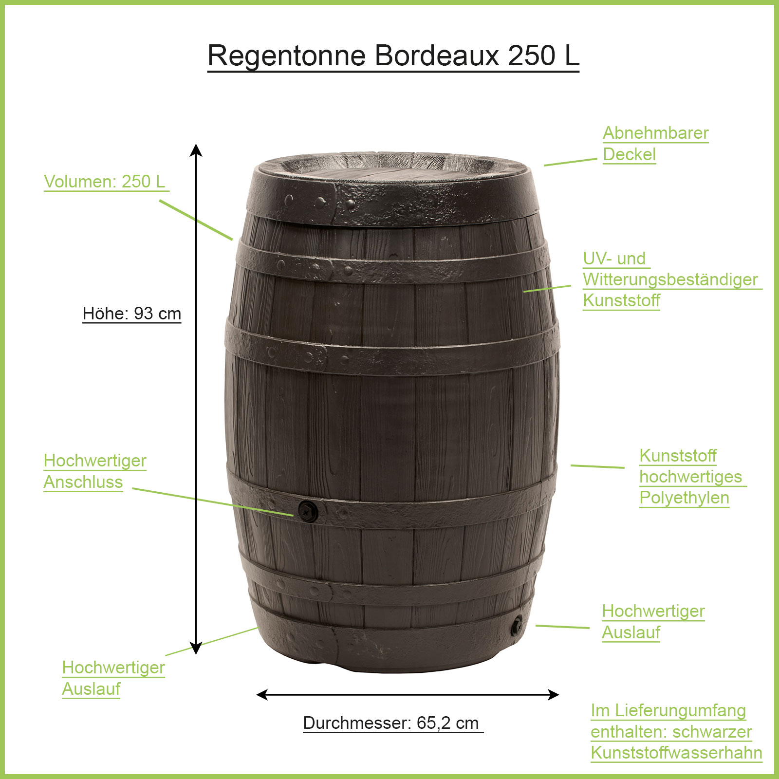 Regentonne Regenfass BORDEAUX 250 Liter inkl. Hahn