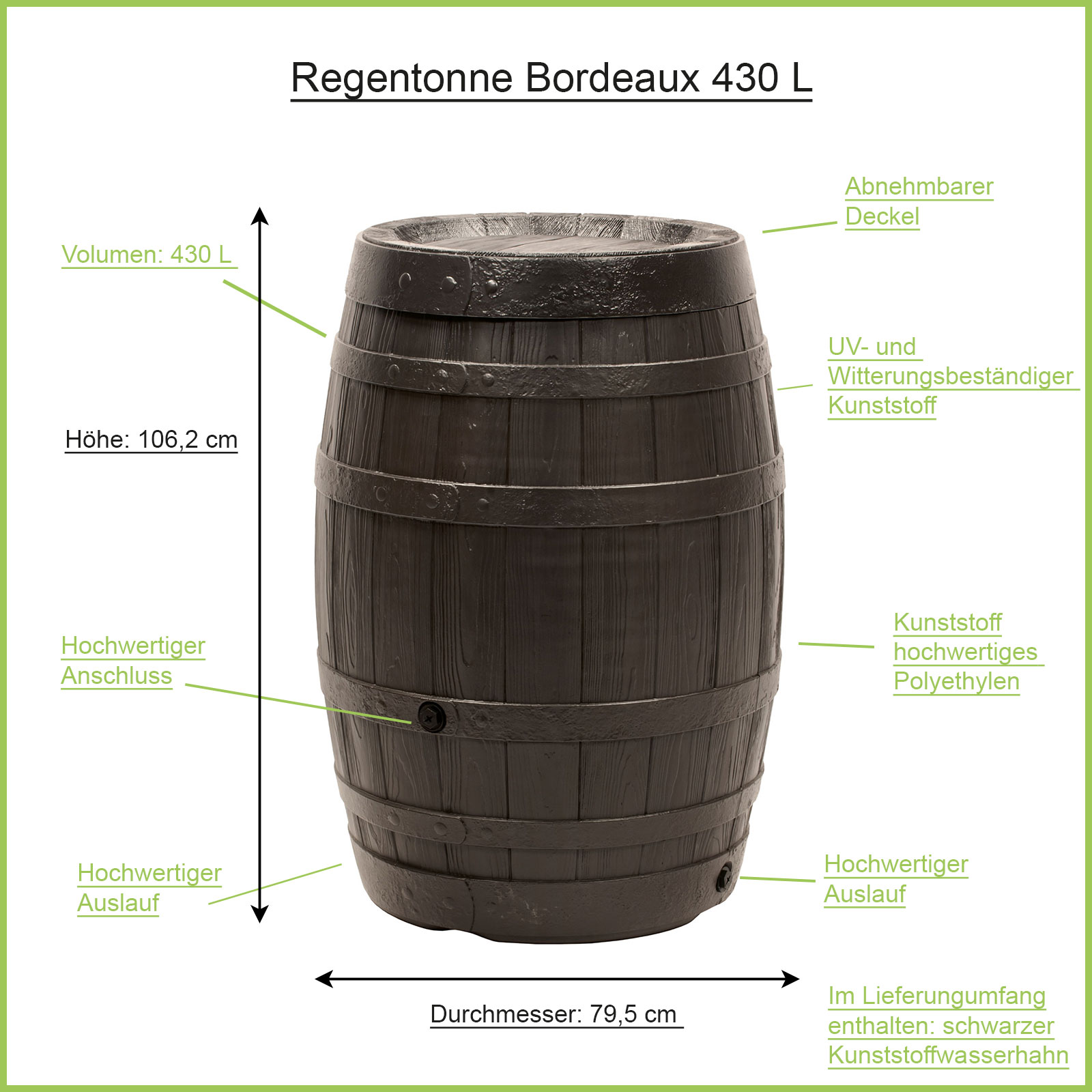 Regentonne Regenfass BORDEAUX 430 Liter inkl. Hahn
