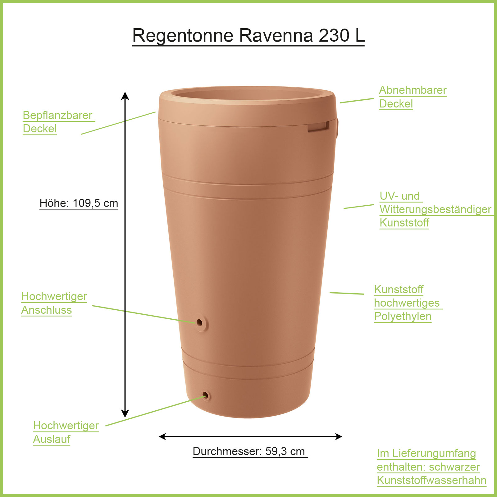 Regentonne terracotta RAVENNA 230 Liter inkl. Hahn